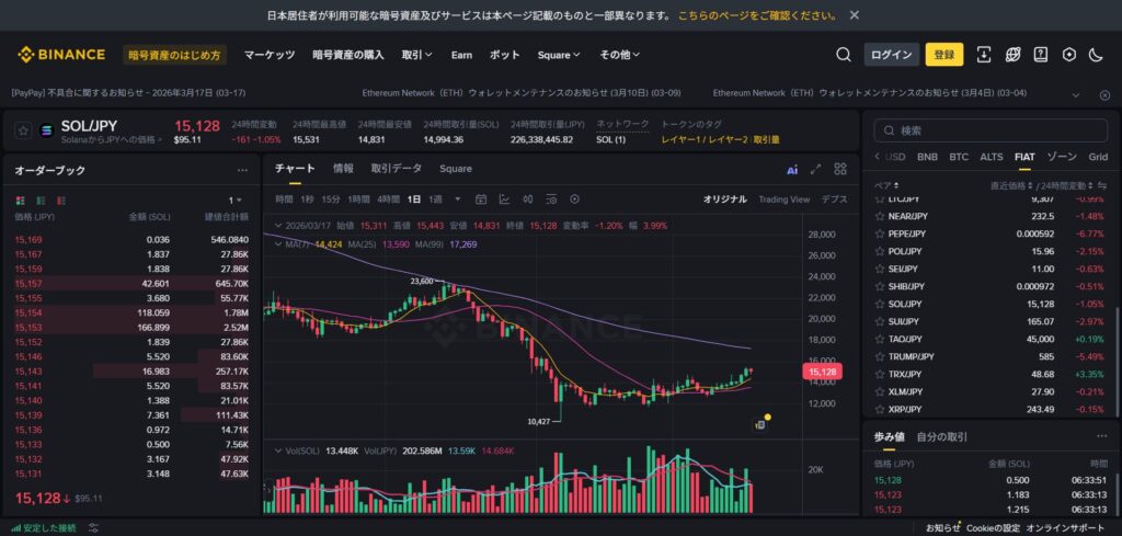 - Solanaの板取引ができる国内仮想通貨取引所・ソラナを保管できるウォレット