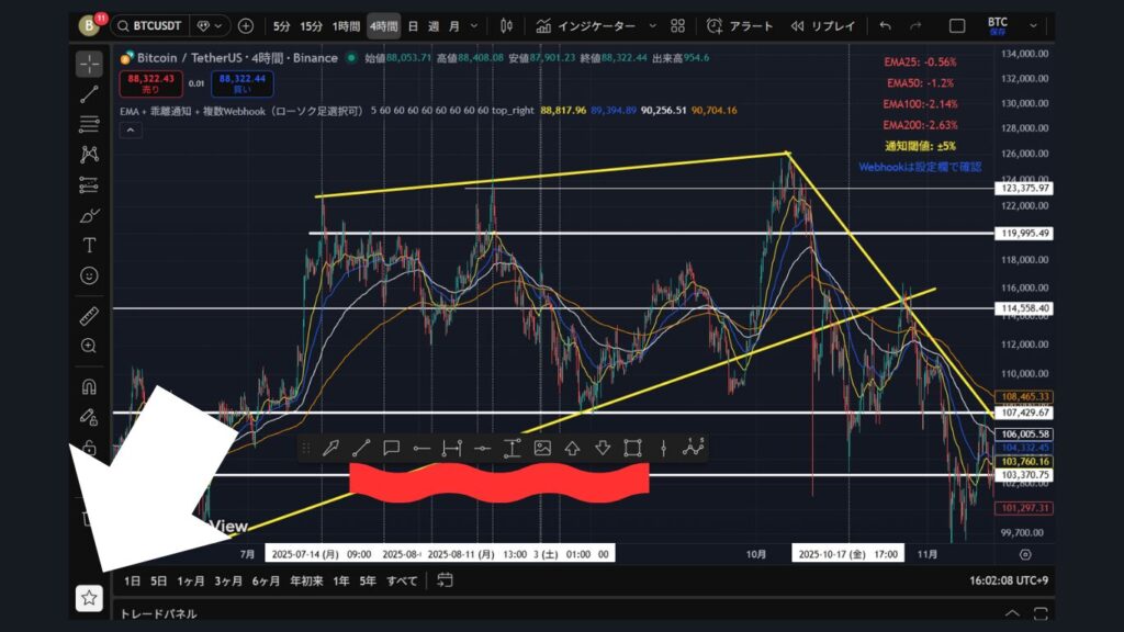 お気に入りに登録した描画ツールは星マークを選択することで、バーが表れてすぐに呼び出すことができます!